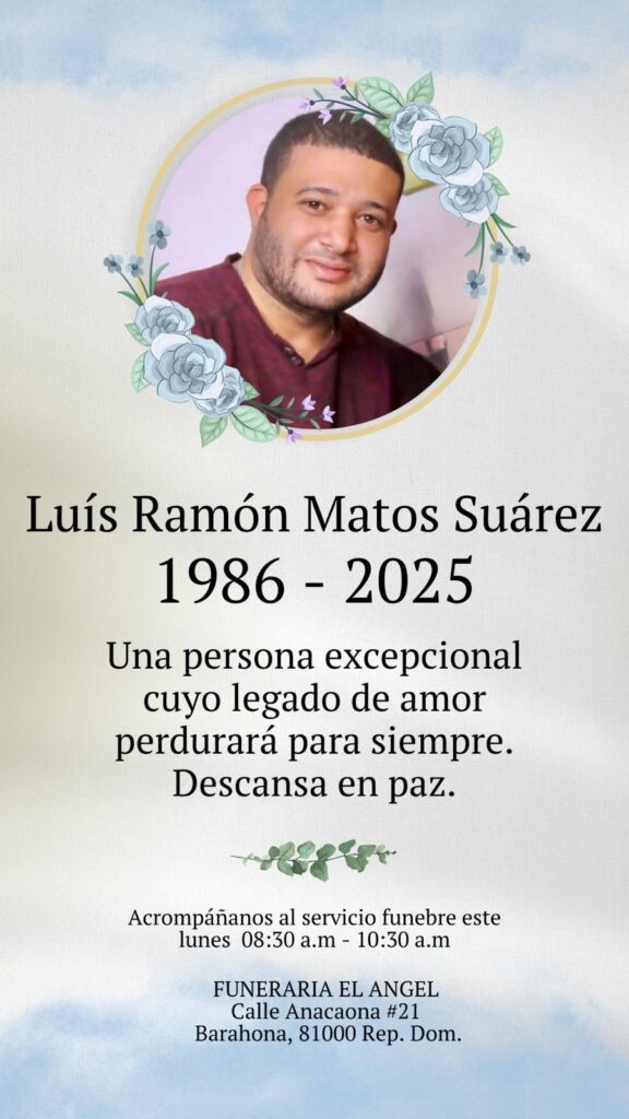 BARAHONA, RD. – Luis Ramón Matos Suárez, el hijo de Luis Mariño Matos Méndez (Luis Chilipa) y Ramona Suárez, falleció en la ciudad de Boston en los Estados Unidos de América, donde realizaron funerales el pasado viernes.