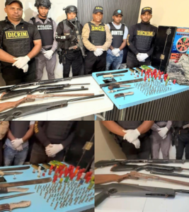 ENRIQUILLO, Barahona, RD. – Agentes policiales pertenecientes a los distintos departamentos adscritos a esta Dirección Regional Sur, con el apoyo de la Dirección Nacional de Control de Drogas (DNCD) y en compañía del Ministerio Público, realizaron varios allanamientos en distintos sectores del municipio de Enriquillo, provincia Barahona. Durante las intervenciones, fueron apresadas varias personas y se incautaron armas de fuego, armas corto punzantes, municiones de distintos calibres y otros objetos ilícitos.Entre los detenidos se encuentra Alfredo Matos Pérez (A) «Geneken», de 50 años, en cuya residencia los agentes ocuparon,1 escopeta calibre 12 (marca y numeración ilegibles), 37 cartuchos calibre 12 disparados, 1 arma de fabricación casera tipo escopeta,14 cápsulas de fusil,1 rifle sin numeración ni marca con 97 balines,2 armas blancas tipo bayoneta, una guerrera policía y otra del ERD.